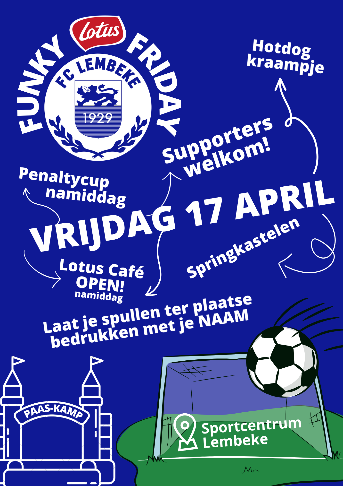 Eigen lunchpakket meebrengen. Behalve op vrijdag 17/4 – dan trakteert FC Lembeke.